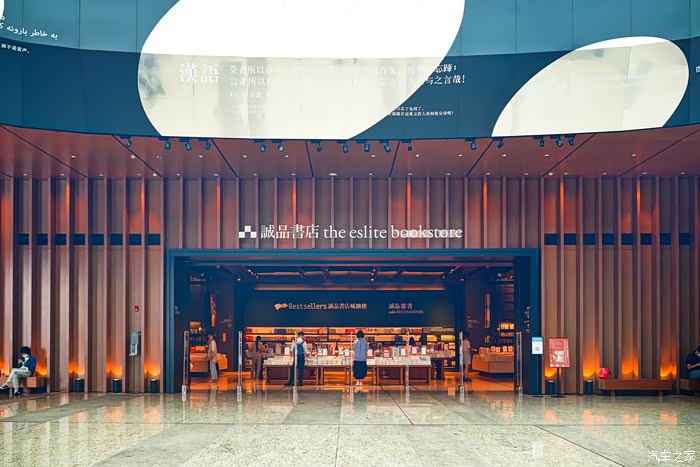 诚品书店广场上巨大的“阅”字非常有设计感,让人远远就可以看到诚品书店的招牌。入门处的展示,外文搭配中文,“ESLITE”这个词是来自古法语中,代表的是“精英”的意思。
