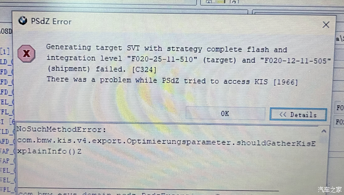 Generating target SVT with strategy complete flash and integration level "F020-25-11-510" (target) and "F020-12-11-505" (shipment) failed. [c324] there was a problem while PSdZ tried to access KIS [1966]