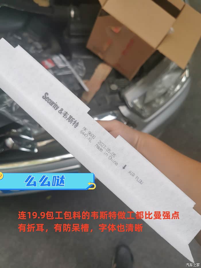 4,滤芯做工,其他家的滤芯都有个槽,防止用户安装装反。他这个不但不带防呆凹槽,而且Air Flow的箭头方向和文字方向一样朝上,大部分人习惯性会按文字方向安装吧。他不带M的老版本是OK的,文字朝上箭头朝下,这个带M的反而变差。
