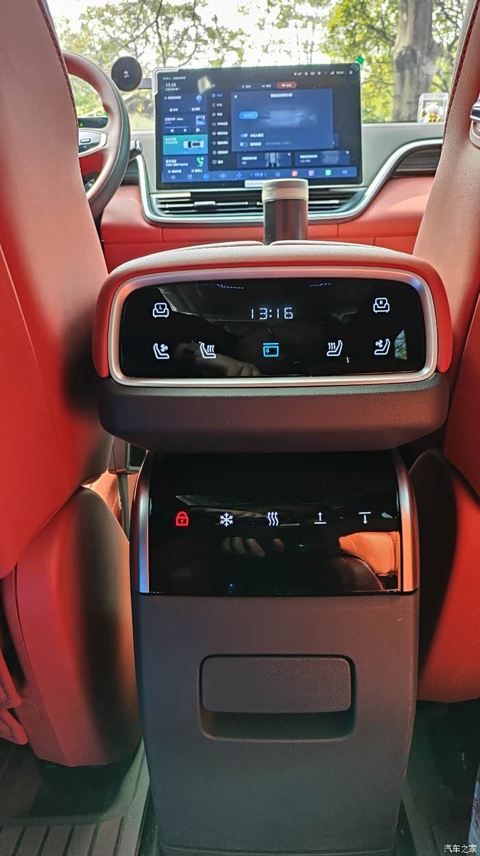 3. 舒适性配置:舒适性配置也很丰富,前排座椅标配电动调节和通风加热,主驾驶还有位置记忆和电动腰托,长时间开车也不容易累。第二排是公务舱式的大两座设计,都支持电动调节、通风加热,右侧还有零重力座椅,一键躺平,还有8点按摩功能,配合遮阳帘和小桌板,简直是享受。二排中央还有冷暖两用电动滑移冰箱,能语音和触控电动滑移,夏天能喝到冰饮料,冬天能喝到热咖啡,太贴心了。第三排空间也还不错,有独立杯架、阅读灯和充电口,短途乘坐也不会觉得难受。全车还有20个扬声器和7.1.2声道wanos全景声环绕音效,看电影、听音乐就像在电影院和音乐厅一样。
