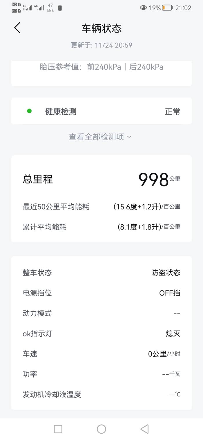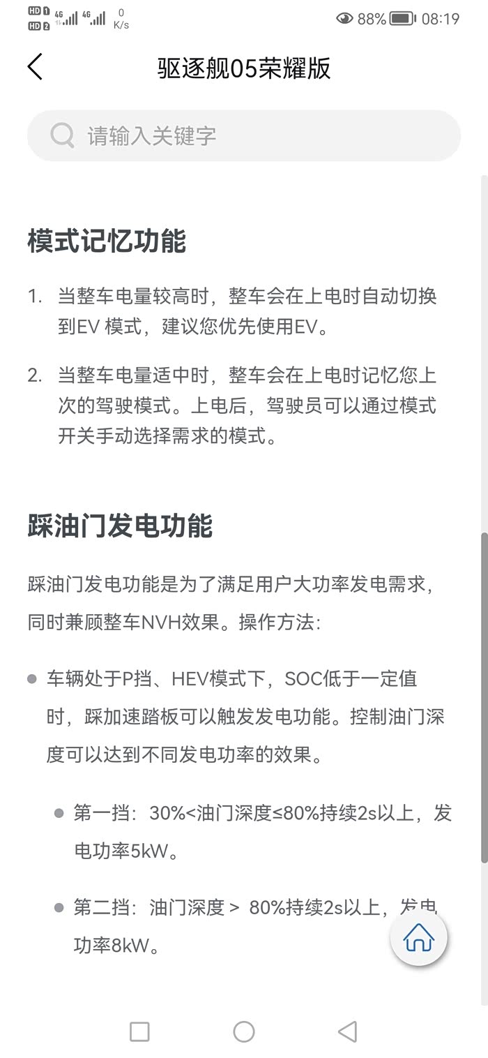 你如果想多用油,可以设置成强制保电记忆,并将保电设置为30%或50%或70%都行,看你是否能天天充电,如果天天充就调30%,如果偶尔充设置50%,如果不充设70%。 一天油耗大概4以内,如果充电少用油多大概5个油左右,开空调可能会稍微多一点再。