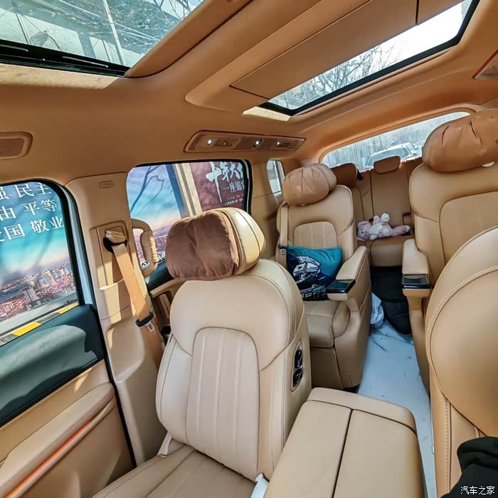 车内空间宽敞,座椅舒适,尤其是第二排的头等舱座椅,电动调节、按摩、通风、加热功能一应俱全,老人和孩子都赞不绝口。储物空间丰富,日常出行和长途旅行都能满足需求。唯一不足就是第三排的脚底有个斜坡,成年人长时间坐车不太友好。