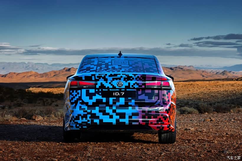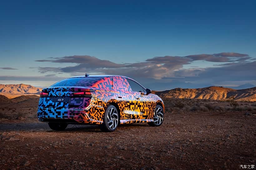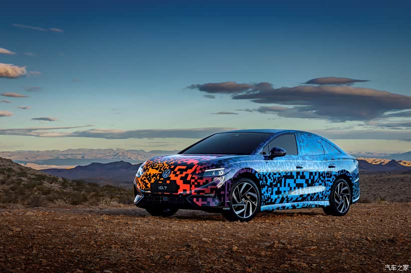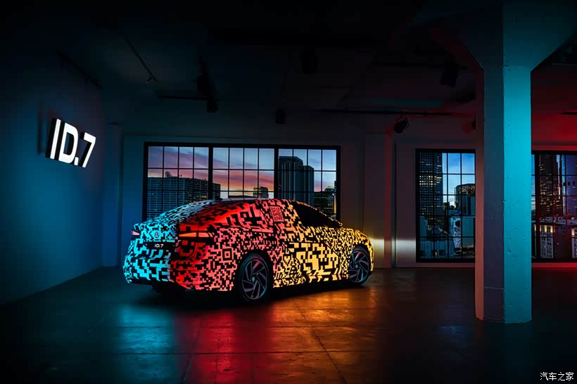 大众汽车集团(美国)展出了基于模块化电驱动平台(MEB)打造的首款纯电三厢轿车全新ID.7。展车采用智能伪装外观,通过独特技术和多重涂层工艺让部分车体展现发光效果。WLTP工况下也可实现高达700公里的续航里程,增强现实抬头显示功能(AR HUD)、全新15英寸显示屏、全新的智能空调控制系统可在显示屏实时显示、带有背光的触控条。 前舱盖及两侧的二维码提供了链接真实世界和数字世界的桥梁。伪装车衣融入了二维码主题元素,并为量产车的外观留下悬念。