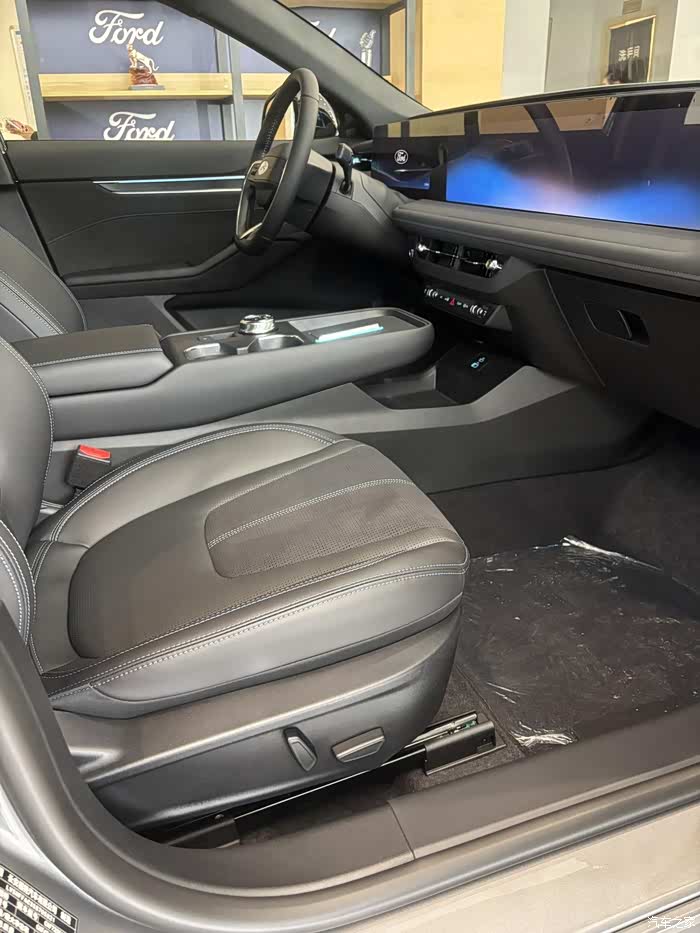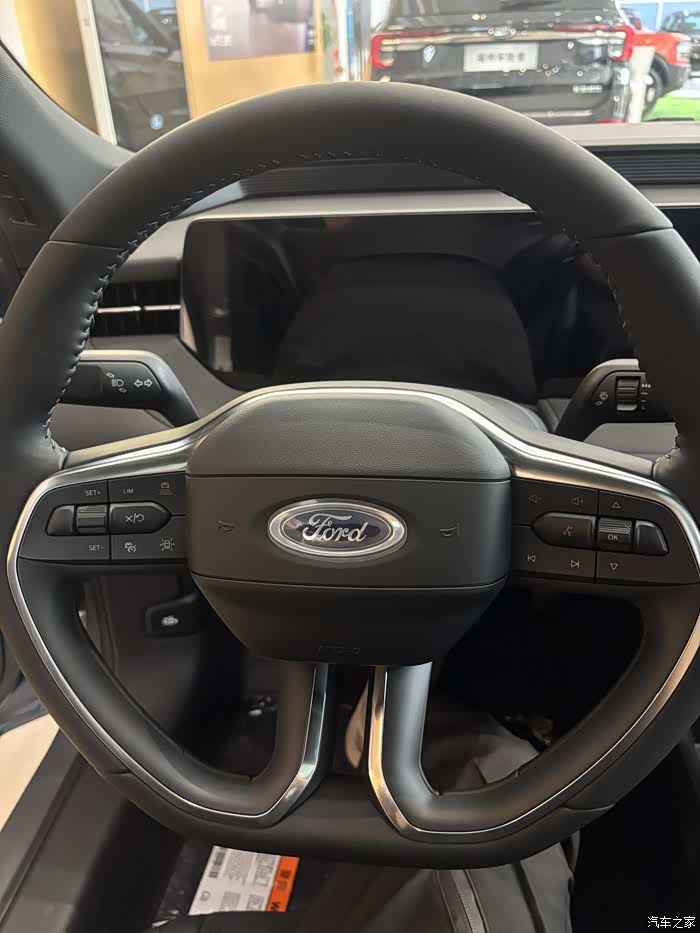 底盘质感是福特一贯的强项。开起来整体感很强,过减速带时是“砰砰”两声干净利落的闷响,车身没有多余的摇晃;快速过弯时,悬架支撑很到位,一点不飘。这种 扎实、紧致的驾驶感受,跟之前开的日系车那种偏软的风格完全不同,路感清晰但又不会颠簸,很有高级感。