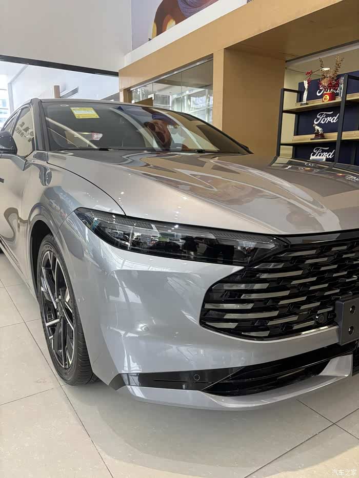 见到实车,心里踏实了 “暮雪灰” 实车很有质感,它不是那种沉闷的灰,在不同光线下有种细腻的金属光泽,把整车的线条勾勒得特别流畅修长,配上 19寸轮毂,运动范儿里透着高级感,完全是我的审美。