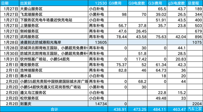 这次两辆车,每辆大概都跑了2200公里左右,G9要跑的更多一些,因为有时候G3i补电时,会开着G9去逛超市,逛市场(毕竟它续航长,不差那一点电)两车基本上都充了470度电左右;