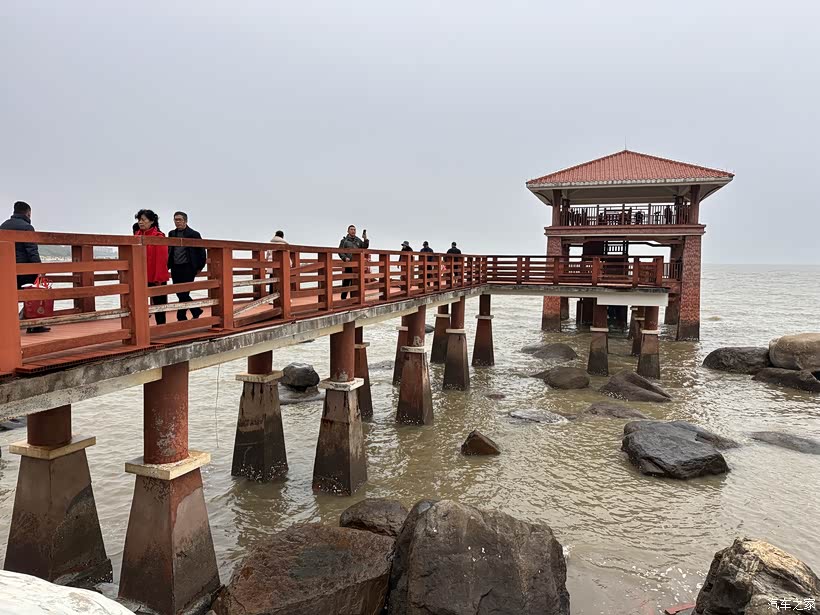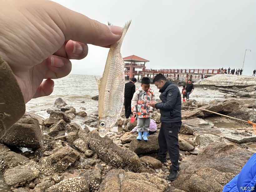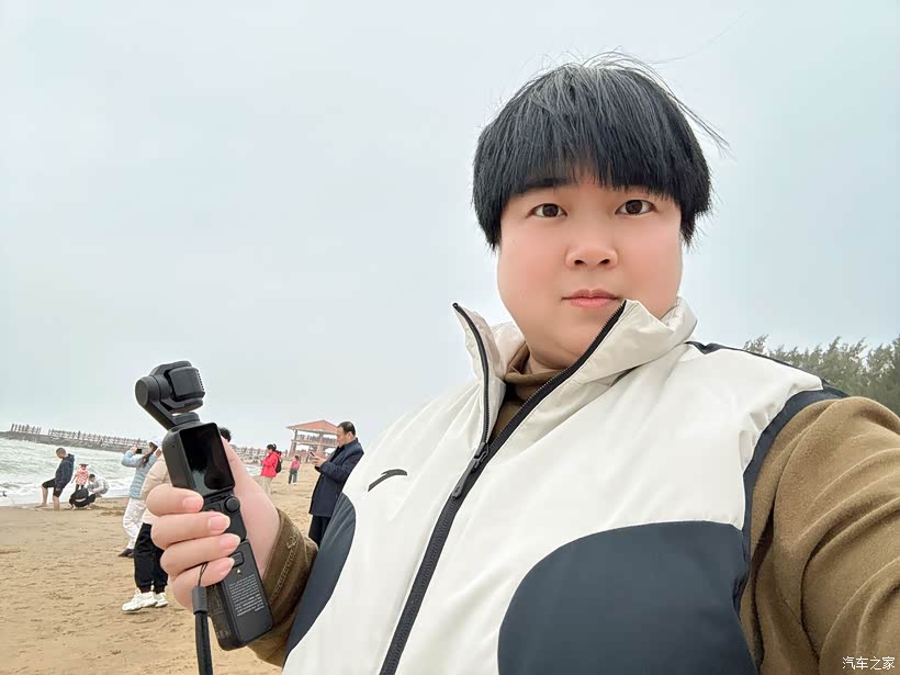 那天海边有风,还挺冷的,羽绒马甲都穿上了