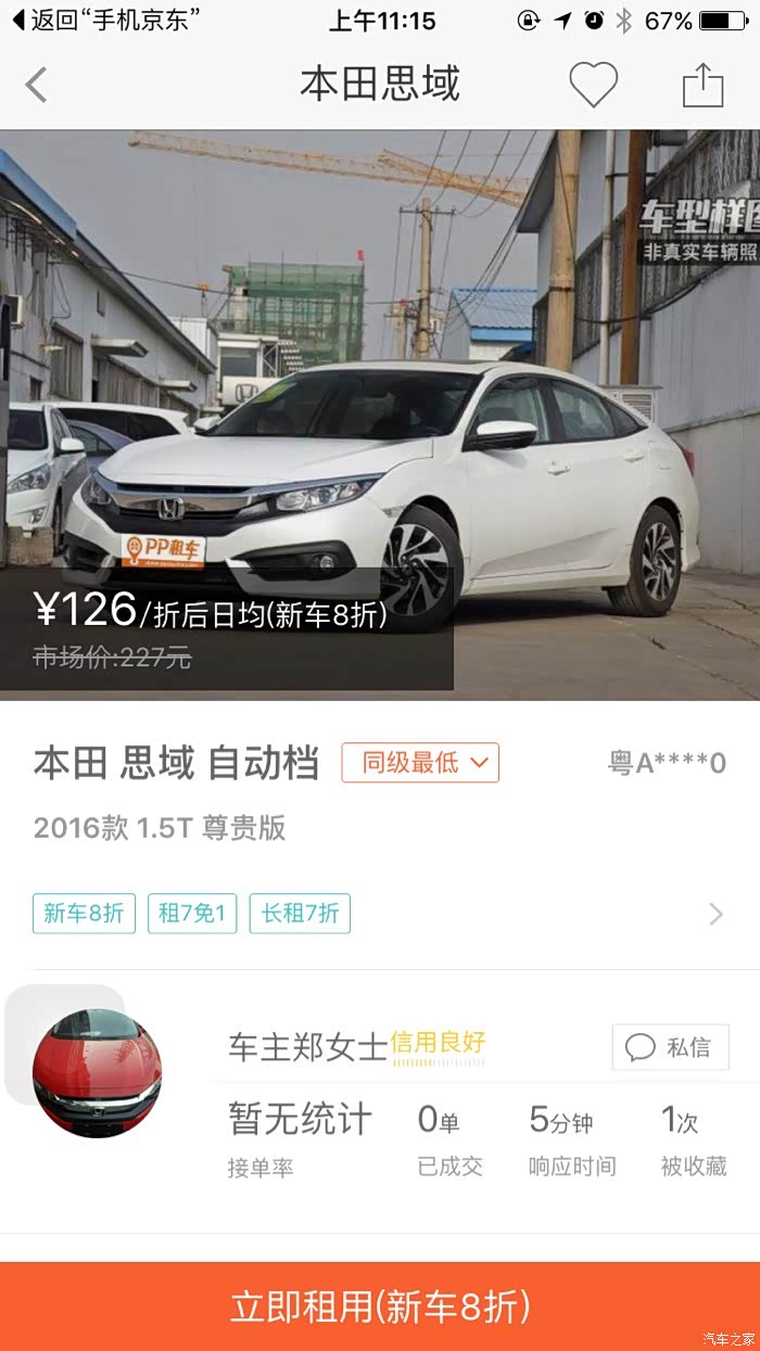 很多朋友问租车软件是什么,我也不一一回复了。 名字:start 可以在各大应用商店下载,由于车辆都是私家车主放在平台出租,不同城市的车型都不同。所以并非全国所有城市都有十代思域可以租到体验,另外价格都是车主定的,所以存在价格差异也是正常的,大家谨慎选择吧。新车上架会有不错的优惠,当时LZ都是以相对优惠的价格租到