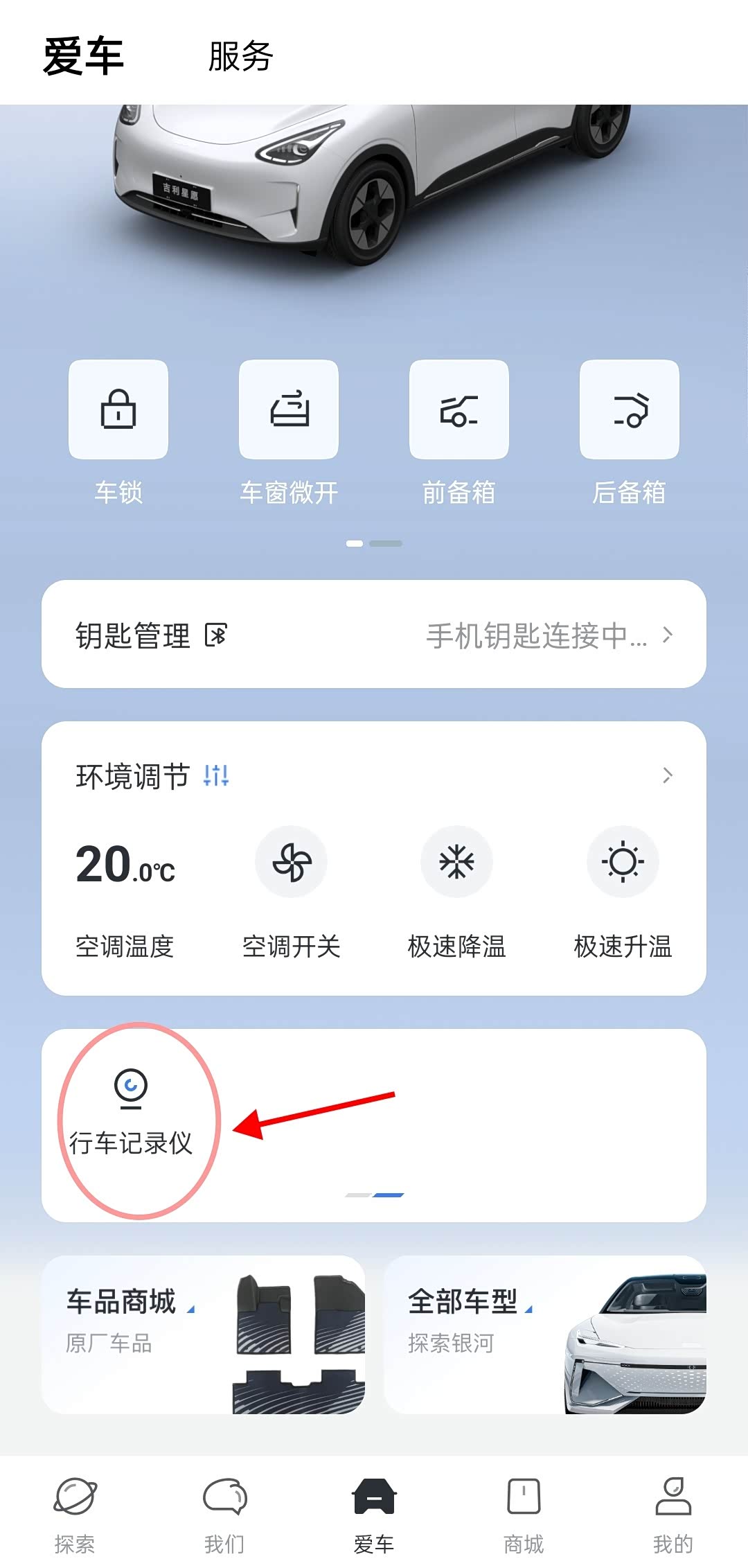 点开吉利银河APP,选到行车记录仪就可以查看了。