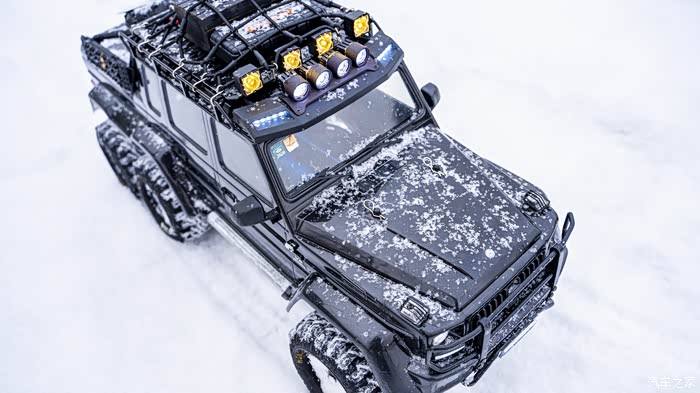 G63 AMG 6x6的前脸基本保留了普通版的设计,并配备类似于皮卡的开放式行李厢,整体设计足够霸气。而它最大的特点是增加了一个后桥,变为六轮越野车,而且还是6X6的越野车!