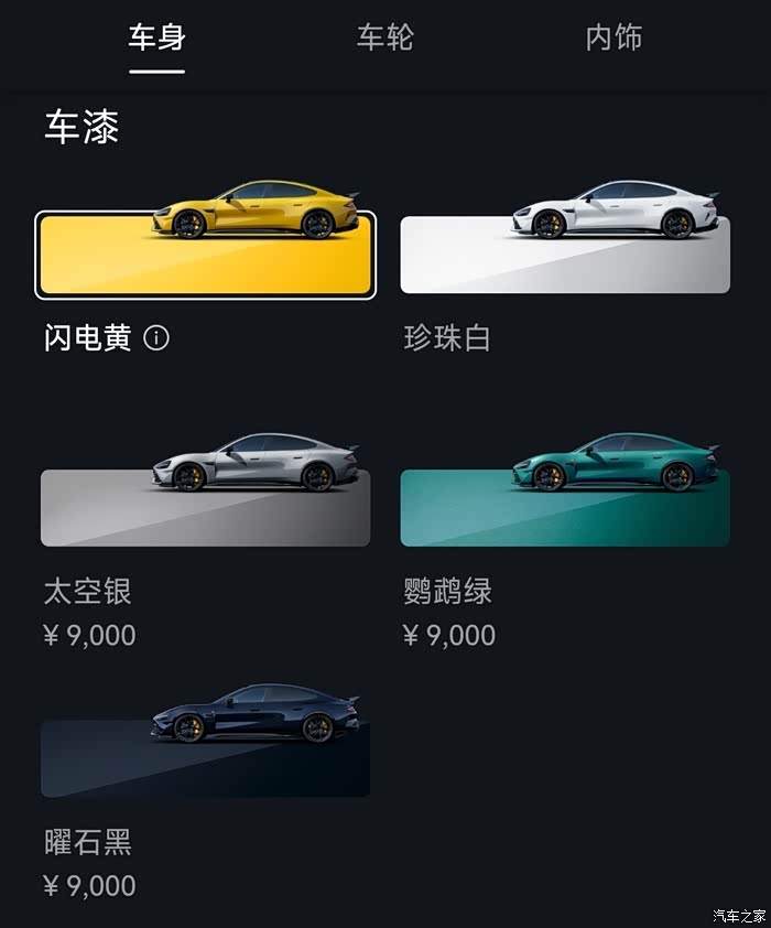 它有五种外观颜色,经典的曜石黑、珍珠白,豪华的太空银、鹦鹉绿,还有超吸睛的跑车色系闪电黄,每一款都很绝。轮毂也有多种选择,想追求个性和性能,加钱上锻造轮毂;想要性价比,基础款也完全OK。