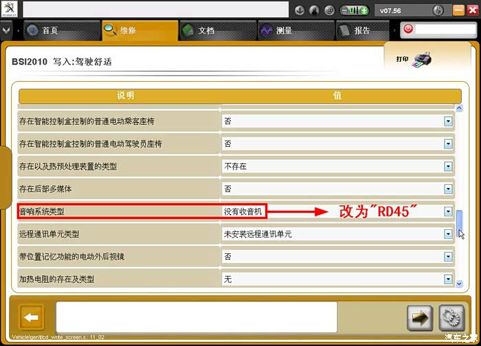 4、然后选择BSI2010选项,进去。选择电控单元。中间出现输入密码的对话框一律选择否,多选几次。进去之后如步骤三图选项选择存在,之后保存(点有下脚的配置符号)