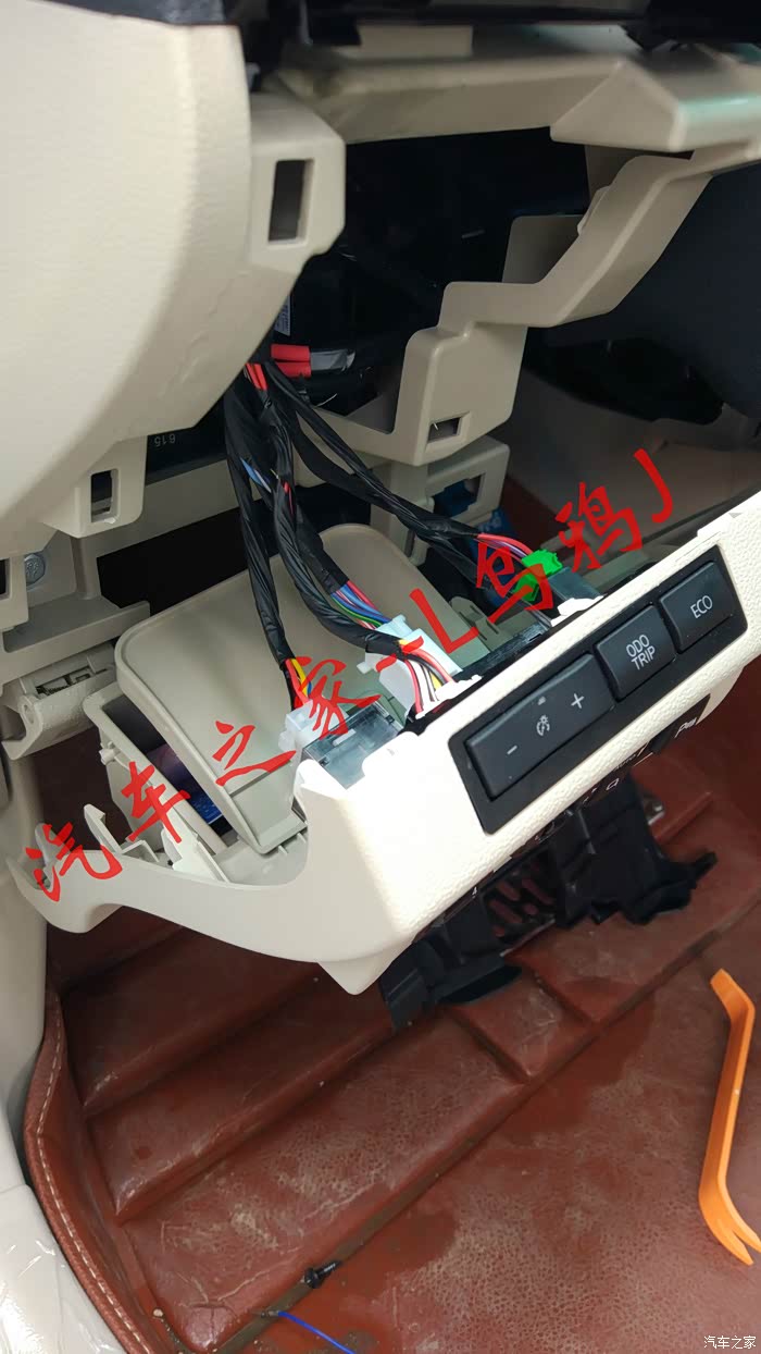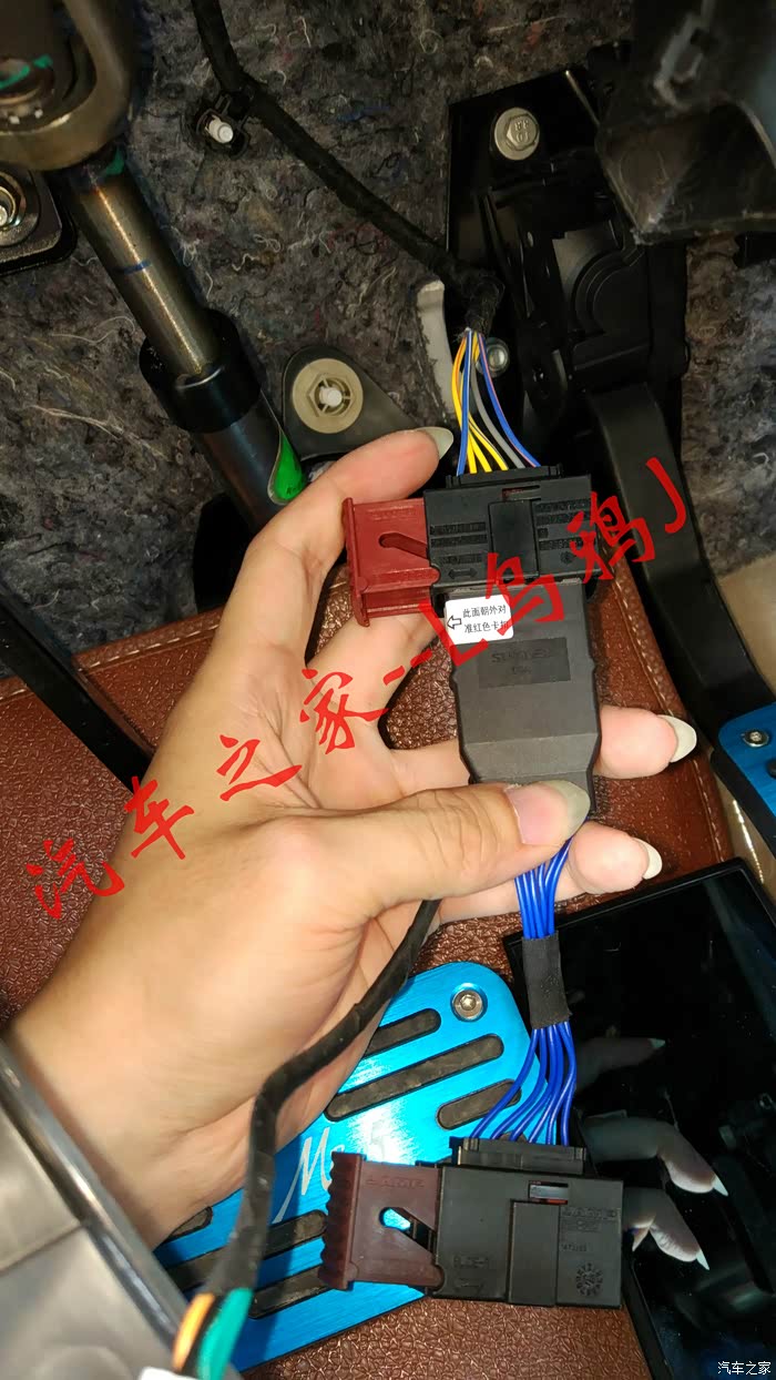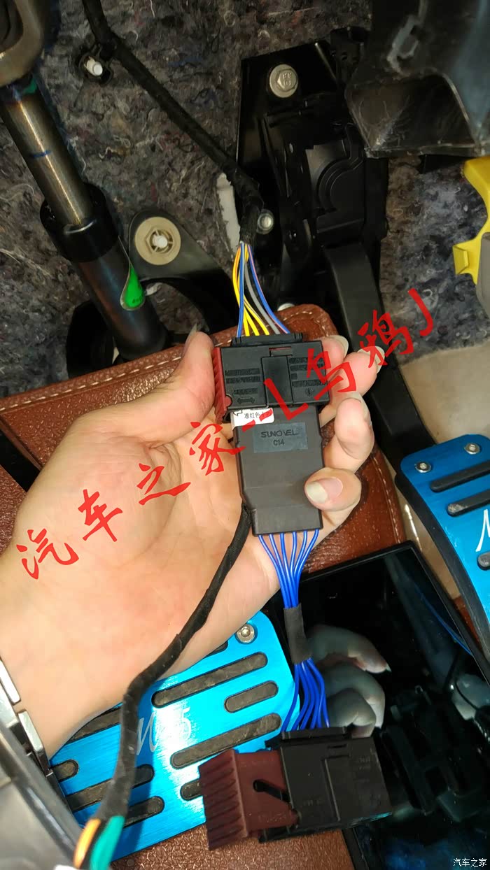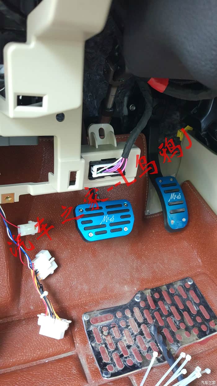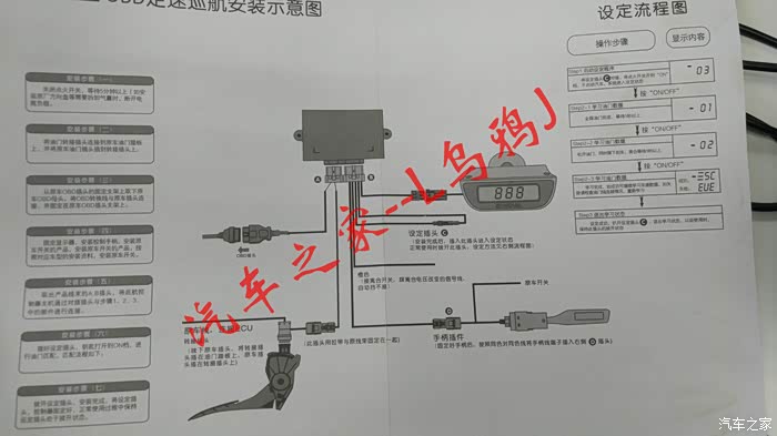 学习完成后上路试一下,车速大于40km/h时长按巡航按钮,听到滴一声后按设置按钮此时松开电门,车会按照按下设置的时速匀速形式,此时按“-设置”或者“+复位”速度会增加或降低,注意按设置是否减速,按复位是否加速。都没问题后按取消或踩刹车后定速巡航失效。如果一切正常则表示大功告成,准备合理布线了,布线过程不多说主要是整洁安全为宗旨,只提三个地方,第一是OBD的一分二。第二是显示屏幕如果打算放倒挡风玻璃左上角的话需要拆左前A柱。第三是定速巡航主机的固定。