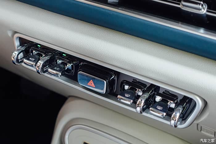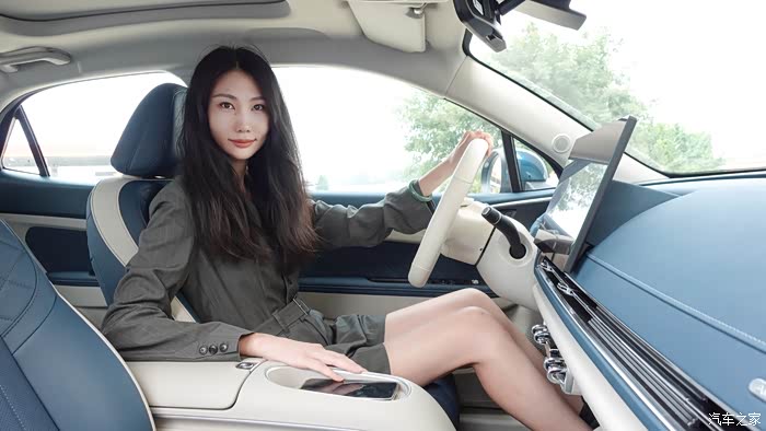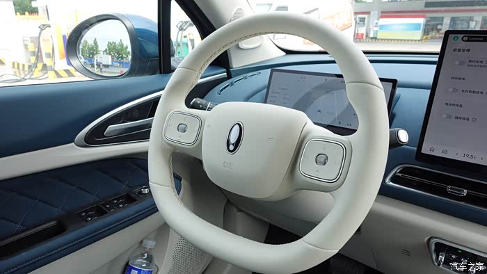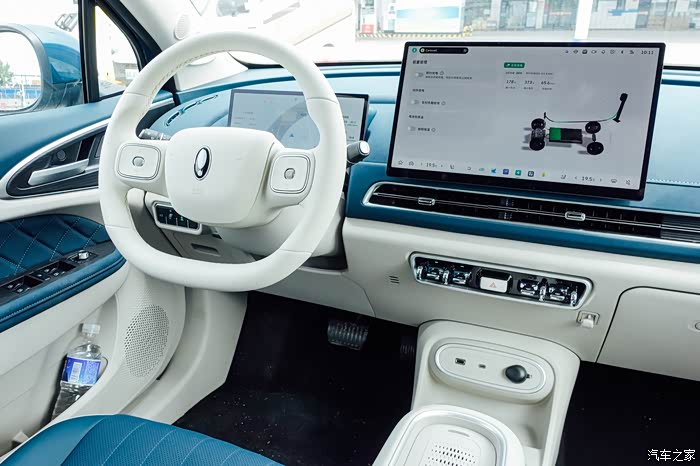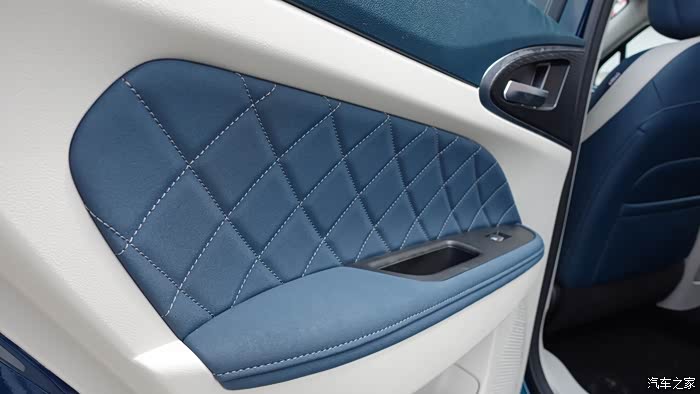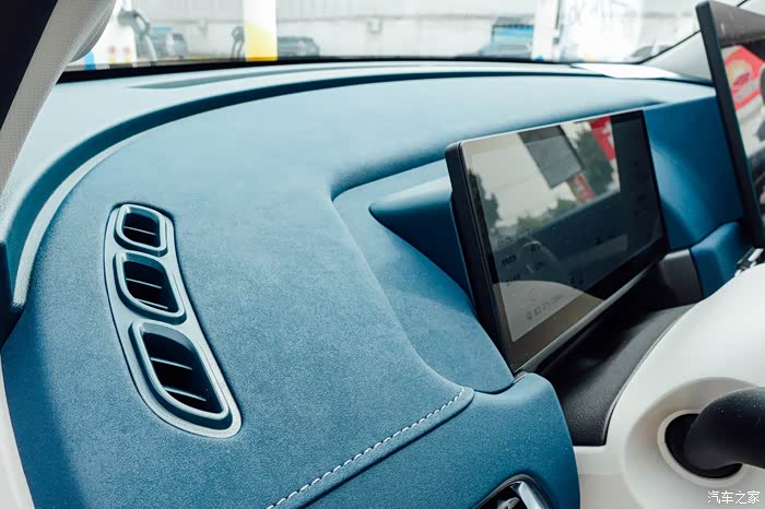 内饰名字「石青翠」初听就觉得独具古风韵味,实物配色更让人心情愉悦,米白与蓝色拼接的内饰像海洋与沙滩的交界,中控台的圆形元素和钢琴按键设计,比千篇一律的“科技风”更有温度。