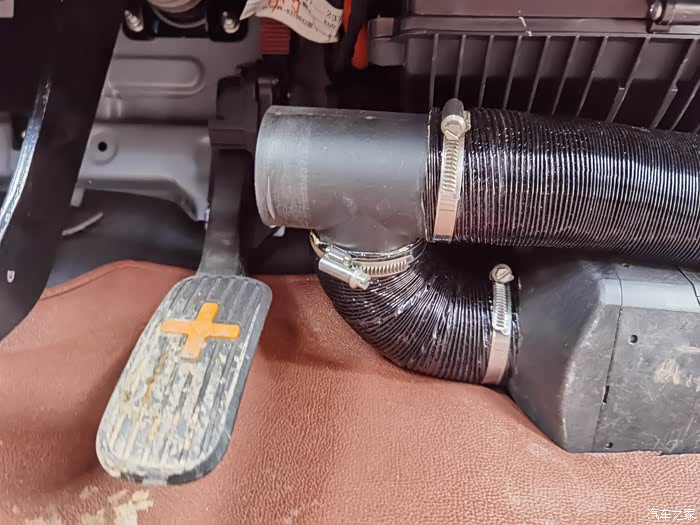 只要开车玻璃就起雾,打开空调吹热风基本不管用,吹不开,看不清外面,没法开车。我把柴暖出风口装了三通,一口吹脚,也能吹上腿,热乎的很,一口用管子连接到原车内循环风扇处。然后打开内循环,就可以把热风吹到玻璃上,效果很明显,能看到反光镜,可行。侧面玻璃大部分位置也是吹不开的。雾大呀。