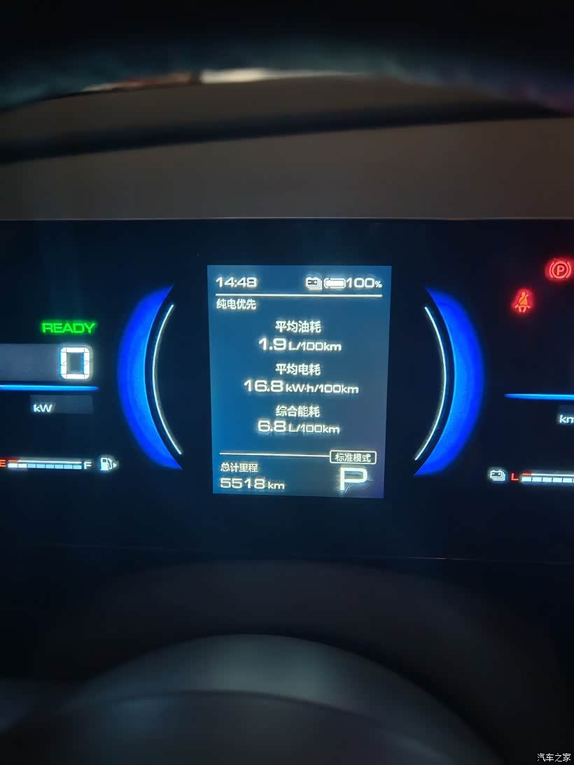 我平时上下班来回40公里,纯电模式足够用。充电很方便,家用220V插座就能充,晚上10点后谷电0.3元一度,充一次电12度左右,才3块多,能跑80公里,比坐地铁还便宜。周末带家人出去玩,就用混动模式,加92号油,现在表显油耗5.2L/100km,上次加满一箱油跑了700多公里,加油站都少去了不少。