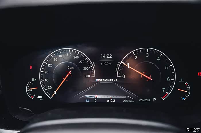 仪表盘一共三中主题,会随着驾驶模式的切换而变换,当然也可以去刷隐藏改变样式,这台车就变成了M550d