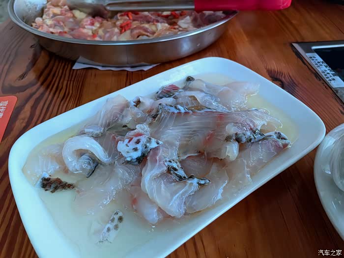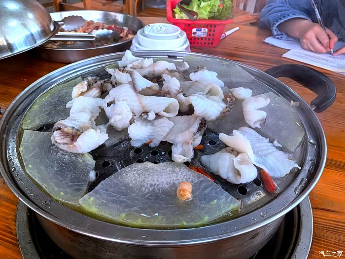 我们点了招牌桑拿大鸡项、桑拿鱼片、汤底加了五指毛桃;