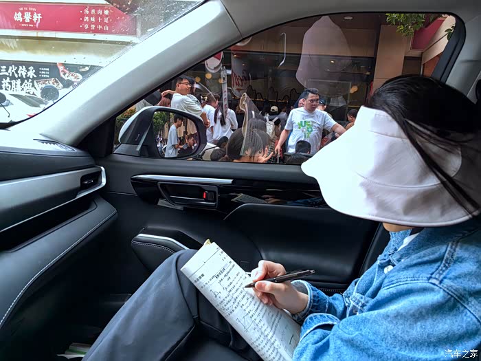 车上空调开的比较低,刚下车还穿着外套。