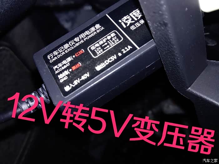 取电器线端接行车专用记录仪电源变压器,这里重点来了。轿车的整车电源额定电压是12V的,以我这个凌度记录仪为例,行车记录仪标配的是转变5V的电源变压器(这一点非常重要,安装前请仔细阅读行车记录仪的安装说明书,如果没有请自行购买)。因为保险片出来的电压都是12V,千万不要把12V的电源线,不经过电源变压器,而直接连接行车记录仪。不然行车记录仪通电瞬间就烧了。