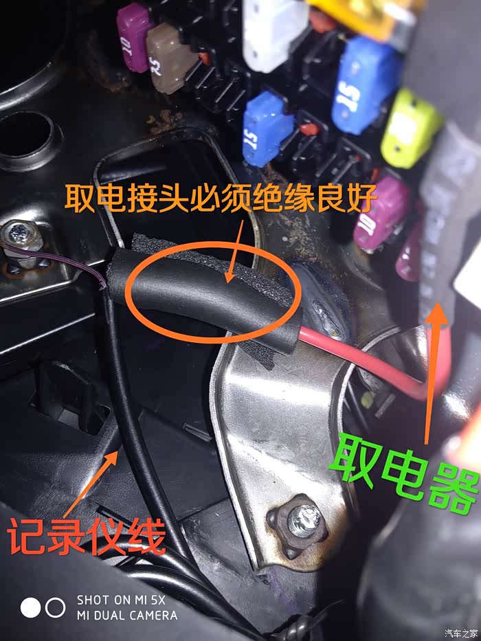 取电器线接头一定要搭接和绝缘,不然后果你懂的,切记切记,这个非常重要。
