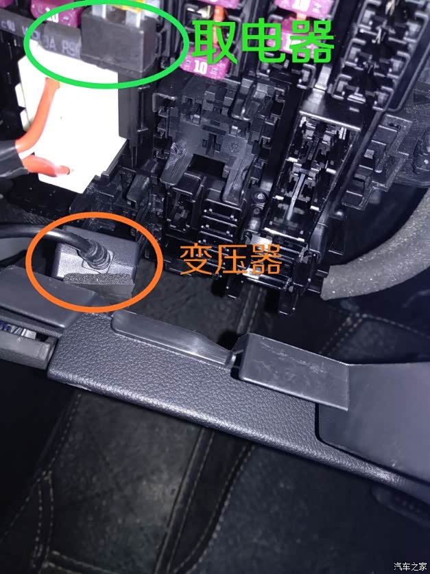 其实行车记录仪自主安装不难,很多要求不高的童靴直接在点烟器插口插上取电。安装快捷是快捷了,但是美观就大打折扣了。另外还有很多车主对电路一窍不通,不知道在哪里取电。如下图: