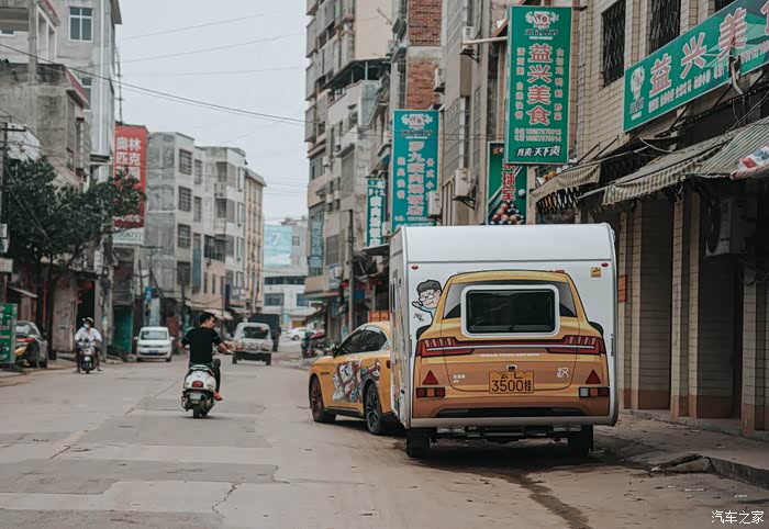 拖挂式房车比自行式房车要更难驾驭一些,因为拖挂式房车是一个前车一个后车的组合,而后车的大尺寸以及对前车视线的影响,都会增大拖挂房车的难度,所在前期选择拖挂房车尺寸的时候就很重要了。我选择拖挂式房车的一个理念,就是选择一个尽可能小的房车,所以,在综合衡量之后,我选择了这款家之旅390的拖挂房车。它的尺寸相对来讲不是很大,但是内部空间也足够用。就这样小的一台房车,我们行走在广西的国道上,突然遇到了限宽栏,线宽的宽度仅仅是两米三,要知道我的前车汉EV的宽度就是1910了,那在这种情况下,我后面的拖挂房车能过吗?