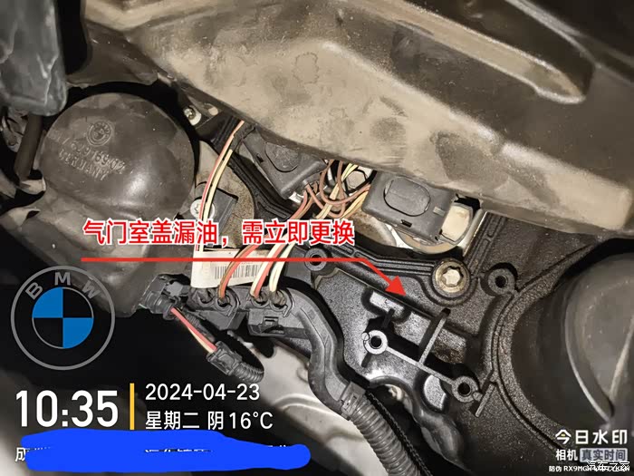 气门室盖漏油,更换。也是比较正常塑料件老化。