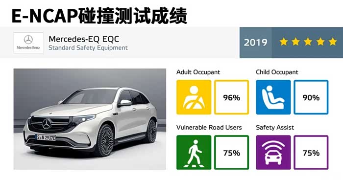 目前这款车只在欧洲E-NCAP进行过碰撞测试,得到了五星的成绩。国产之后的EQC碰撞成绩如何,还是需要公平公正的碰撞测试,才能知晓,海外测试成绩只能作个参考。