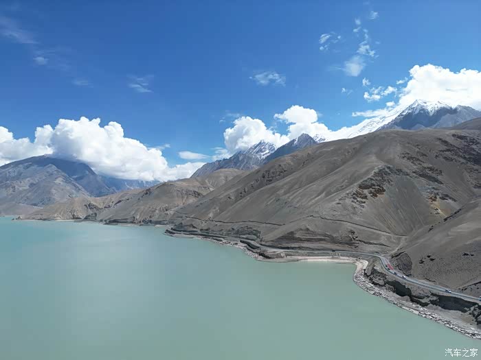 盘龙谷道玩太久了,导致到班迪尔蓝湖,也就是下坂地水库的时候天已经黑了,啥都看不到,路上车很多,还好是单行道,塔莎古道核心地段据说是一年都没通车,就班迪尔蓝湖到塔县这一段就感觉挺险的了。