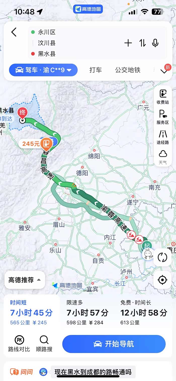 Day1:重庆市永川区-四川省黑水县(约530公里)