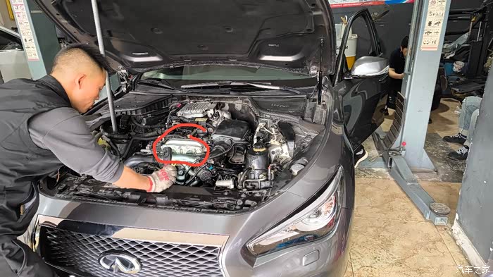 师傅说这车的奔驰发动机还有个问题,可能在十万公里后出现链轮故障,图中红圈那个银色盒子里的链轮。那个换起来可贵了,SSSS要一万以上,他那里换都要7/8千了。唉,希望不要有问题。有车友遇到链轮问题的吗?