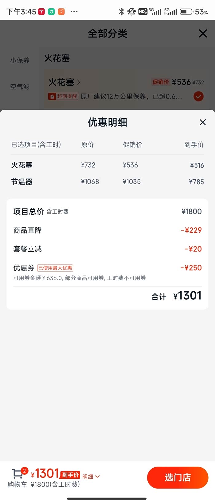 想着这节温器万一有故障,可能把我丢路上,可能造成更大的损失,想着还是换吧。就在一个熟悉的修理店弄了,换节温器950,换NKG火花塞,两项一共1300,价格应该合适吧。拆换节温器还是挺麻烦的,搞了4个多小时。