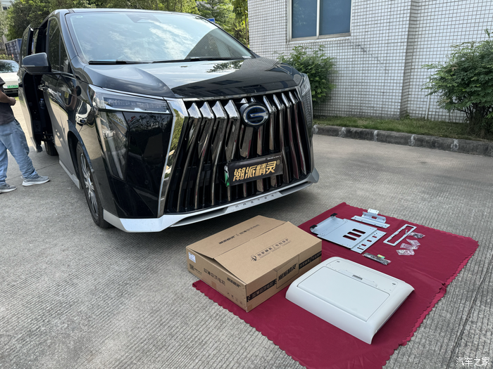 传祺e9升级改造,顶篷吸顶电视安装上!