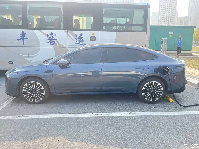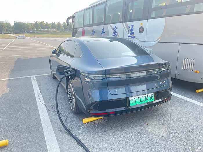 ? 充电前:车辆挂P档并下电,再插入充电枪。快充口在右,慢充口在左。