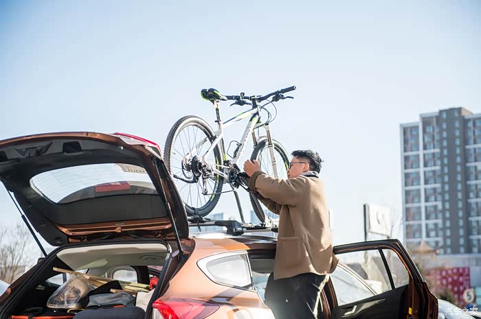 自行车在车上的安装有顶架和后挂架两种方式,我个人还是感觉顶架更稳妥,不过一定要注意出行路上的限高指示。
