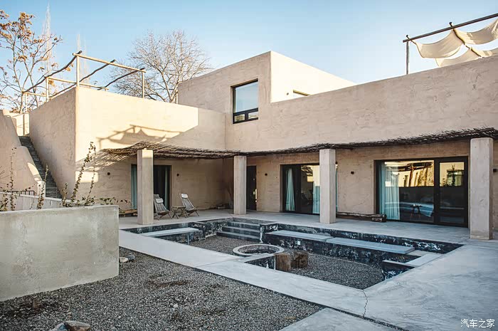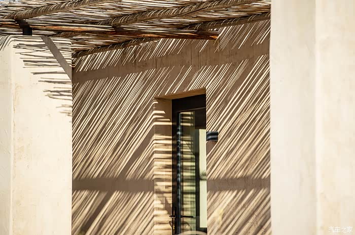低矮规整的夯土房,四四方方,外立墙面还有许多不规则的刷痕,众多充满设计感的细节,把这里的原始风貌和新式建筑的设计感融合得恰到好处。
