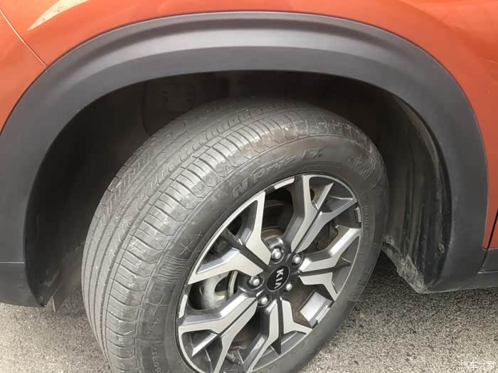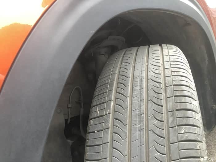 嘿嘿,60扁平度得轮胎少见吧,SUV就要这样,配上大轮胎开起来非常舒服,坐在车内几乎感觉不到地面坑坑洼洼的感觉。