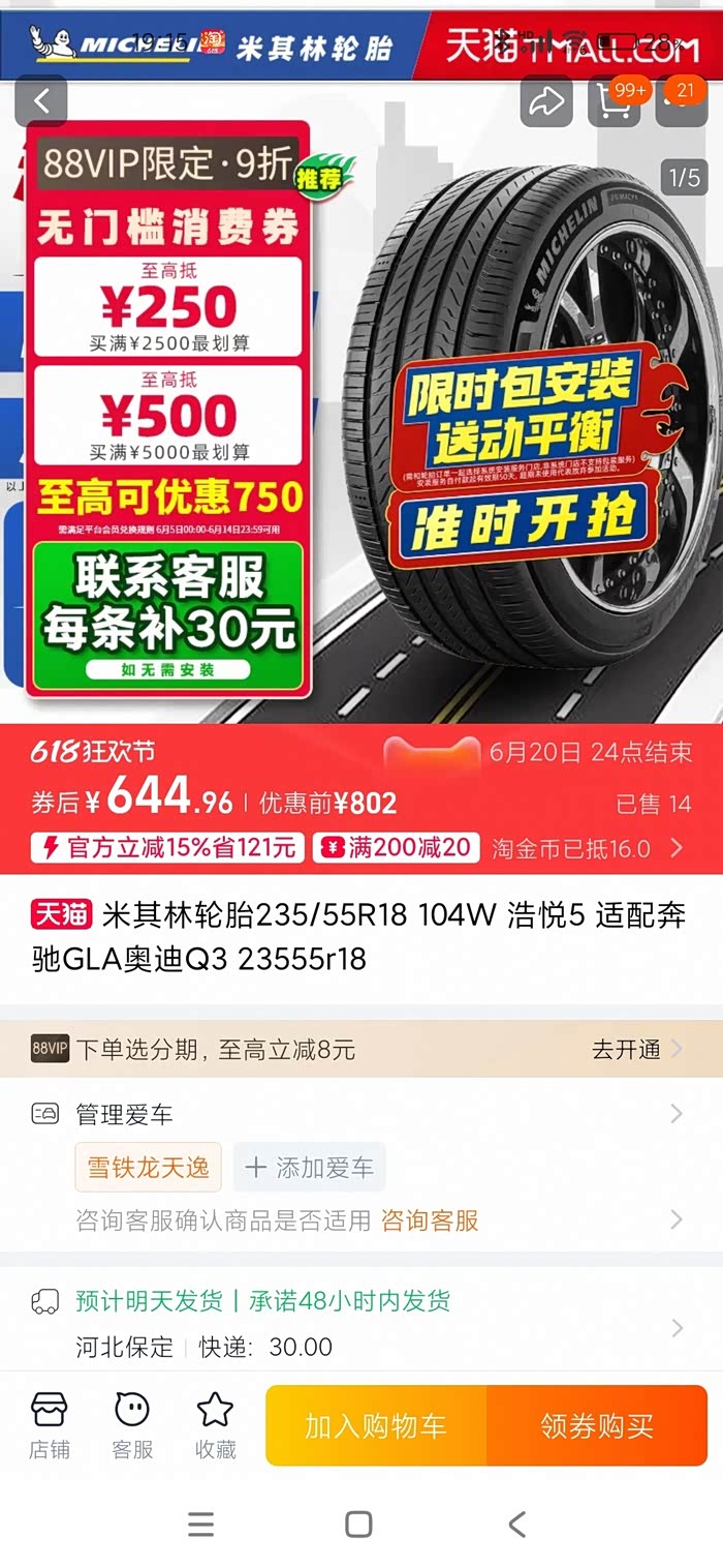 我说早都查过了,你们没有米其林配套的,固特异、马牌很多,还是试着修补吧