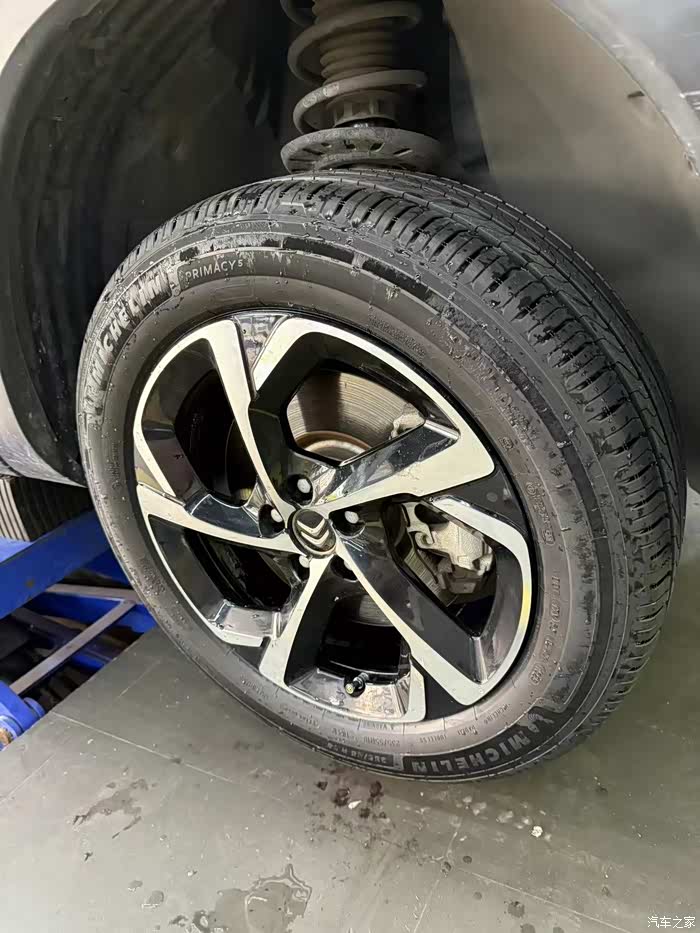正好拐到辅路,没几步,胎压监测报警了,说轮胎需要打气