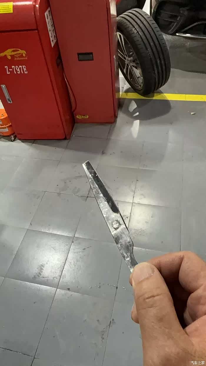 这么大的铁器,居然就在轮胎内,这是有多巧才能扎进去呢?