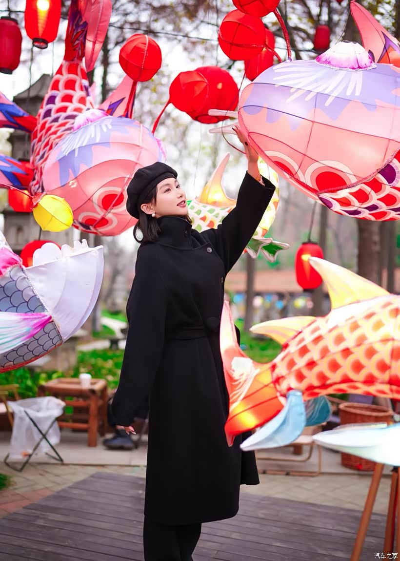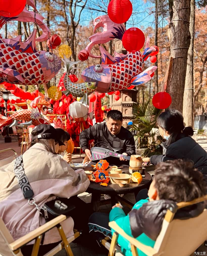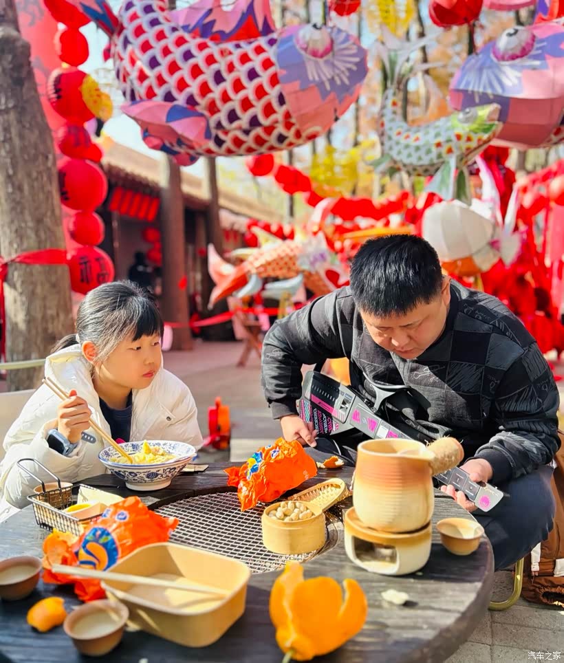 茶歇后去打卡萤火栈道和诗词天幕,车子的外放电功能还帮我们给手机充了电,这个小细节太贴心了。夕阳西下时,车窗外的红灯笼与车身线条相映,随手拍了张车与年味的合影,朋友圈瞬间被问爆。