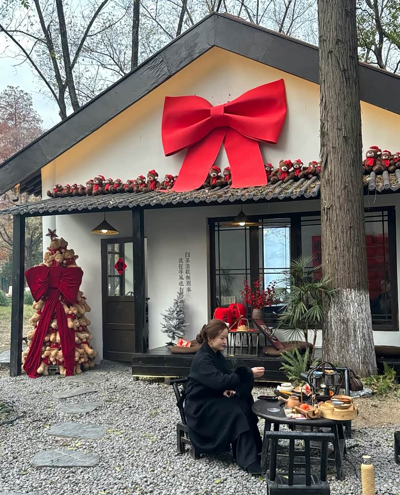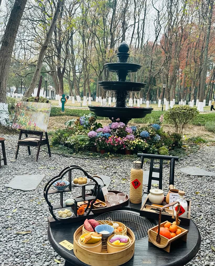 一进公园就被年味裹住,诗词长廊的红灯笼、中心湖的灯组倒影,随手一拍都是古风大片。我们直奔宁馨园的茶寮,红泥小炉一燃,炭火噼啪作响,茶水咕嘟冒泡,烤着橘子、桂圆的香气直钻鼻腔。邻桌有人弹起吉他,旋律伴着茶香漫开,大家围坐闲聊,从日常琐事到新年期许,时光都变得慢悠悠。