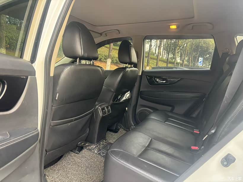 空间表现是这台奇骏最让我惊喜的地方,堪称“移动的家庭客厅”。前排座椅是名副其实的“日产大沙发”,真皮材质柔软厚实,包裹性恰到好处,长途驾驶四五个小时,腰部和腿部也不会有明显酸痛感。后排空间更是宽敞,我183cm的身高坐在后排,腿部仍能留出两拳多的余量,中间地板几乎纯平,即便满载三名成年人也不会显得拥挤。这次远征我带了三个行李箱、两床厚被子和一堆沿途补给,700L的后备箱轻松容纳,返程时还装了不少家乡特产,后排座椅放倒后甚至能放下折叠桌椅,完全满足长途出行的储物需求。唯一的小遗憾是后备箱开口略高,搬抬重物时需要多费点力气 。