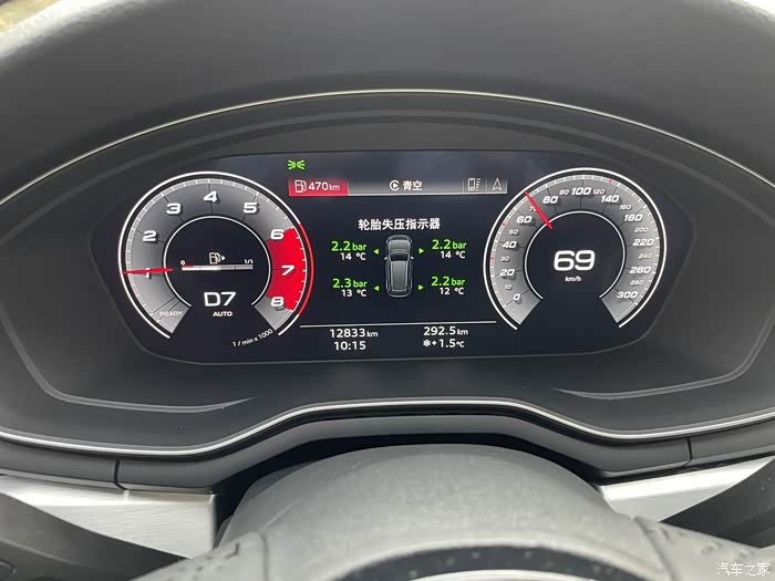 另外胎压显示是特别实用的配置,A4L全系没有标配,只有胎压监测,而胎压监测由abs信号提供数据,容易误报,所以胎压显示弥补了这种缺点