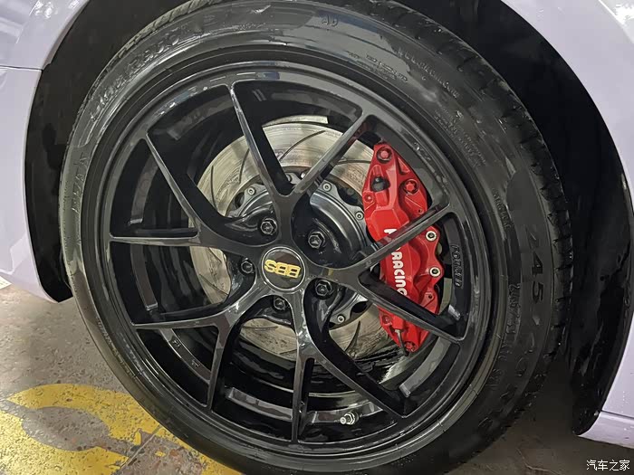 轮毂:选用了一套18寸国产旋压轮毂,BBS款式,原厂数据,完美避开刹车,轻且美观