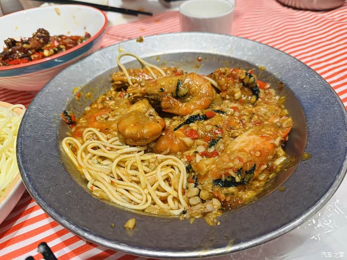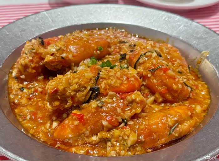 蒜蓉罗氏虾139R,虾鲜蒜香,碱水面才是终极彩蛋。虾身比手掌还大,虾头爆膏,蒜蓉酱香味足,香浓不腻。虾肉Q弹带甜,蒜蓉酱拌入碱水面,面条吸饱虾鲜与蒜香,一口下去“碳水炸弹”的幸福感直冲天灵盖。