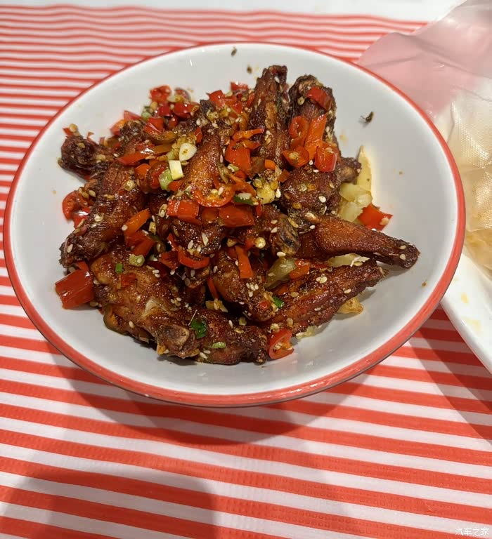 椒盐鸡翅59R,香辣是伪装,酥脆才是灵魂味觉密码:鸡中翅对半切开,裹薄粉炸至金黄,外皮焦香如薯条,内里鸡肉嫩到飙汁。表面上的红小米椒只是视觉上的点缀,整道菜不会很辣,入口是咸香与椒盐的完美平衡,连垫底的炸薯条都被抢光。