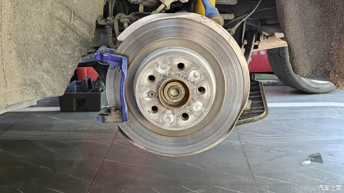 三下五除二,卸掉刹车片,下一步拆掉原厂刹车盘。