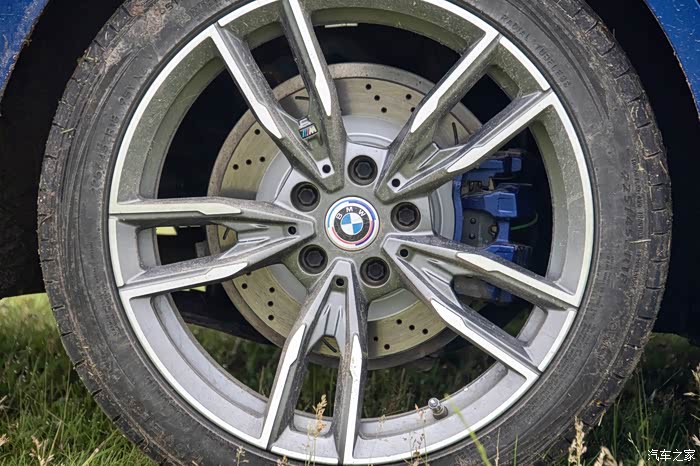 前刹车选择的六活塞卡钳、355打孔划线刹车盘、锻造轮毂。
